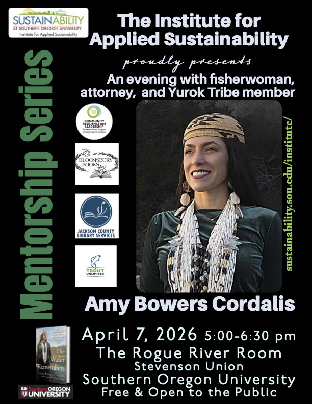 An evening with fisherwoman, attorney, and Yurok Tribe member Amy Bowers Cordalis April 7, 2026 5:00-6:30 pm The Rogue River Room Stevenson Union Southern Oregon University Free & Open to the Public