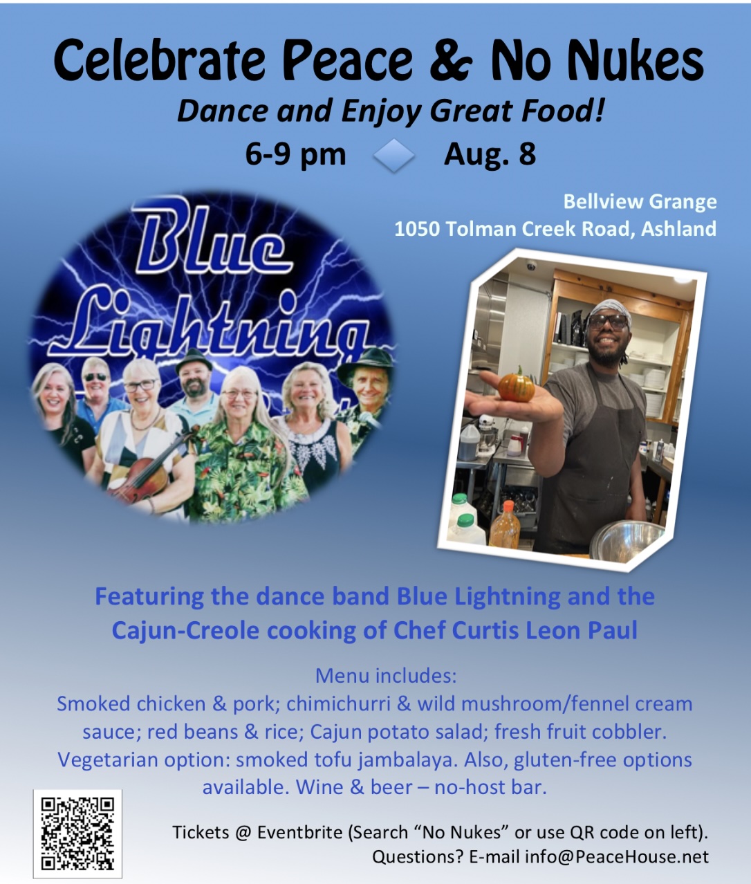 Come dance with us on August 8th! Have you bought your ticket yet? Have you heard? We’re hosting a dance on Friday, August 8th from 6 to 9 p.m. to raise funds to continue our advocacy for a world without war or nuclear weapons. Enjoy music from Ashland’s own Blue Lightning and feast on a […]